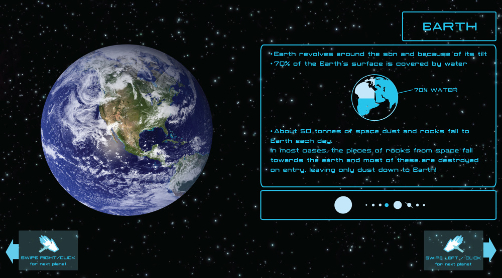 사람들의 우주에 대한 관심을 자극하기 위해, 우주의 심오함을 이용해 이용자들을 유인하면서 우리 태양계에 있는 행성의 중요한 특성뿐만 아니라 흥미로움도 연구했다.